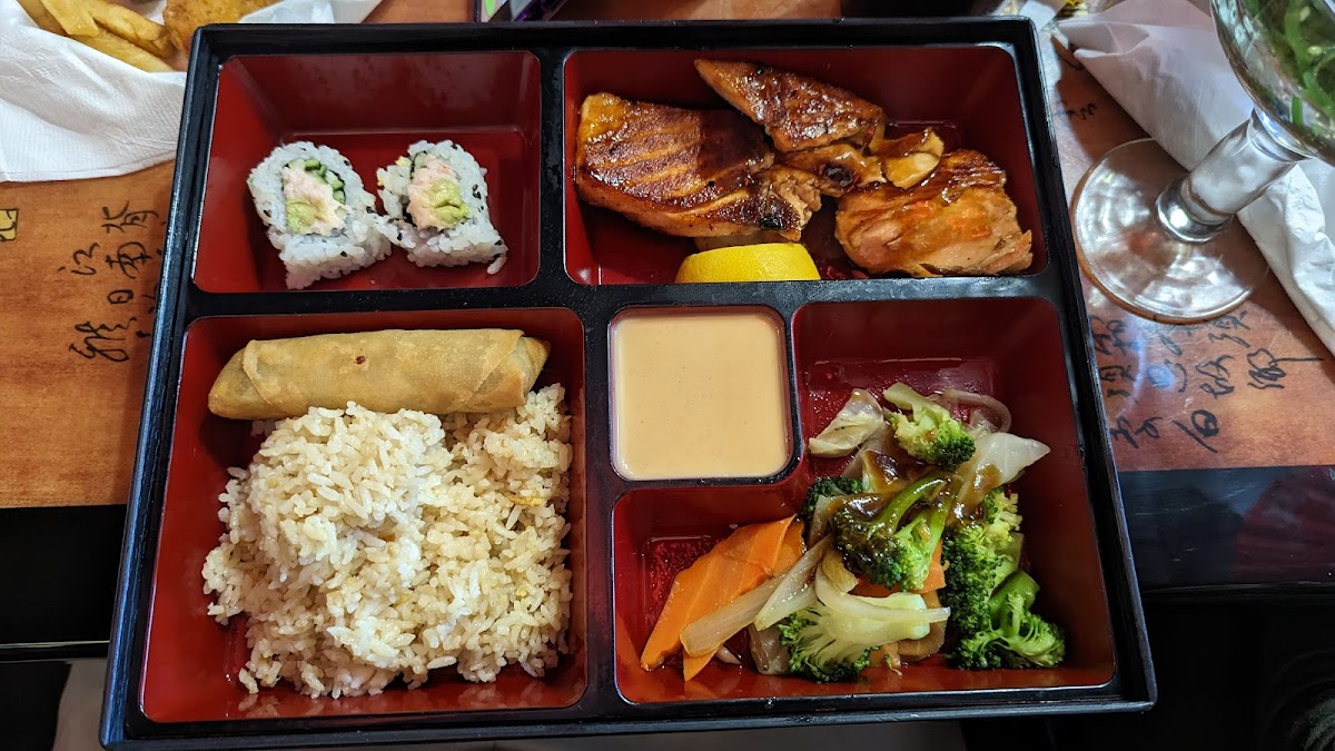 The menu is thoughtfully put together and highlights a mix of familiar favorites and standout specialties. One of the most talked-about items is the Salmon Binto Box, which delivers a satisfying balance of flavors and textures in one neatly arranged meal. It’s the kind of dish that feels both filling and comforting, especially when paired with their warm Miso Soup, a simple but soothing classic that rounds out the experience nicely.