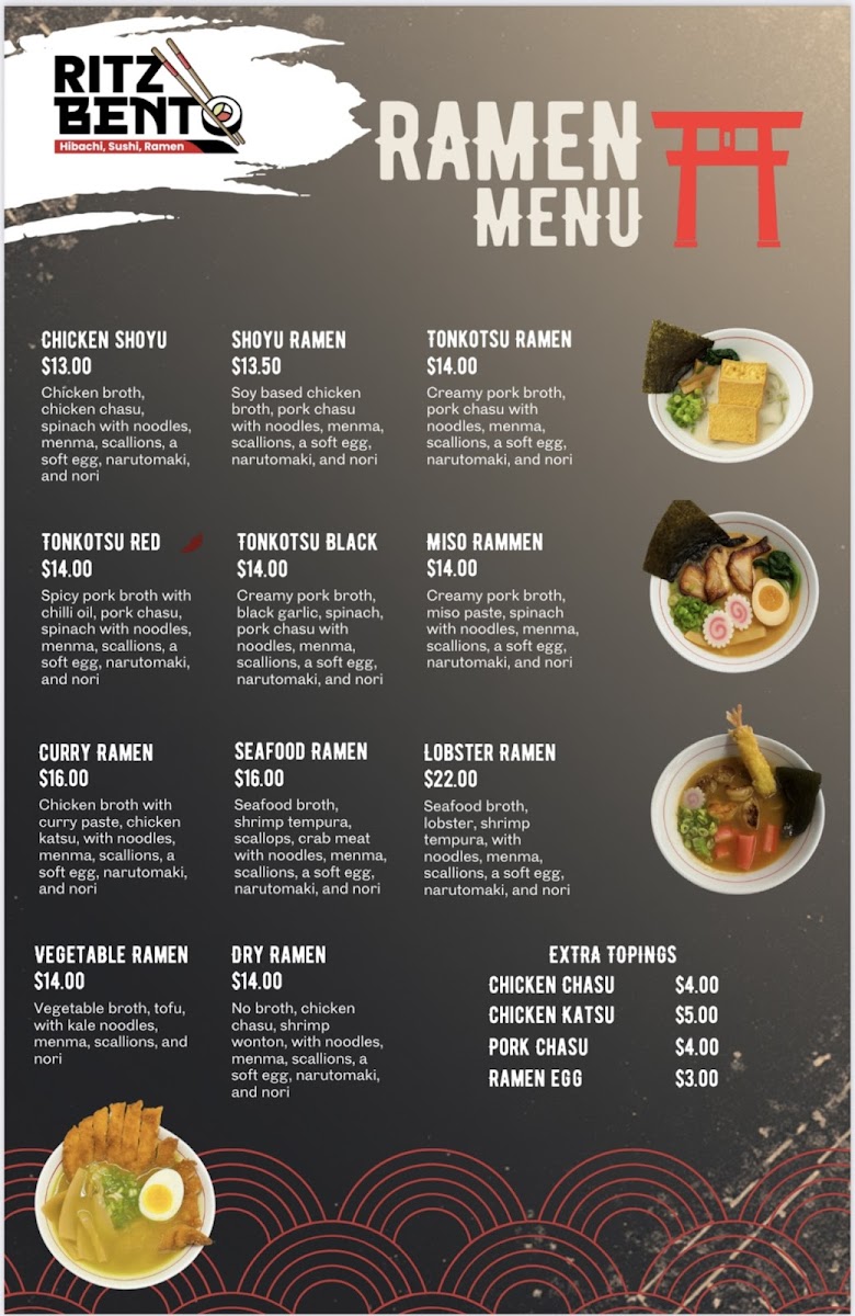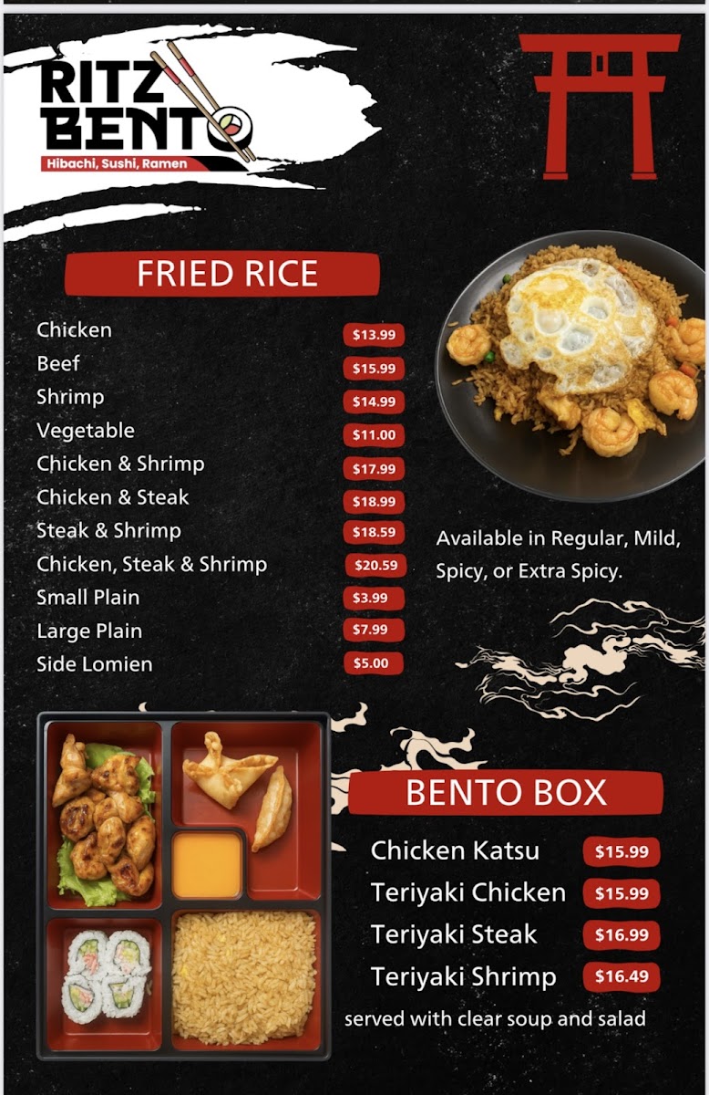 Overall, Ritz Bento offers a well-rounded menu filled with delicious options for every palate, making it an excellent choice for anyone looking to enjoy Japanese-inspired dishes in Texarkana.
